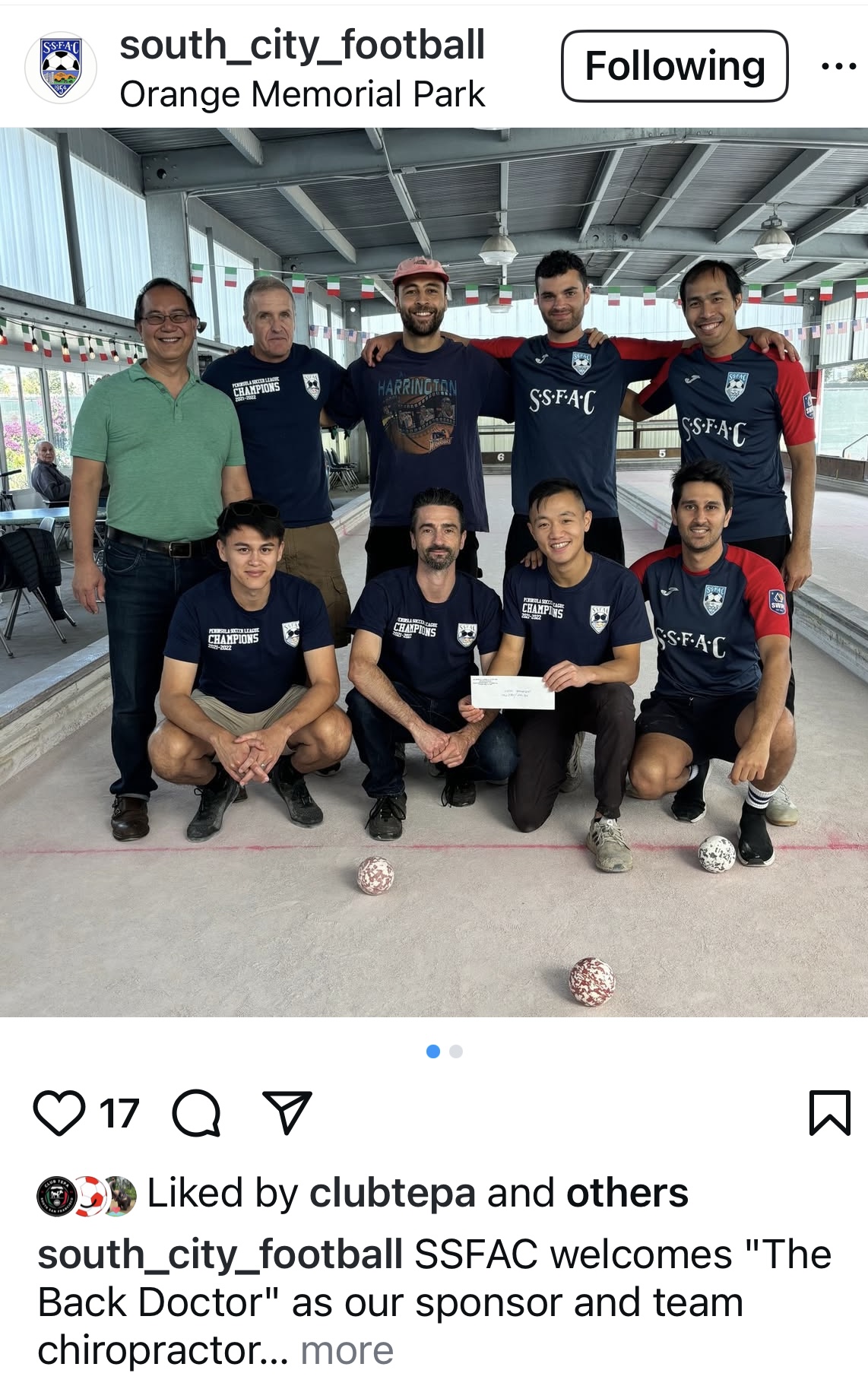 Special Thanks goes to the Italian American Citizens Club of South San Francisco for their partnership and for hosting the Bocci tournament, and a shout out to our friends at Everything South City for providing our team the exposure needed to share our events and season results on thier Facebook Page.